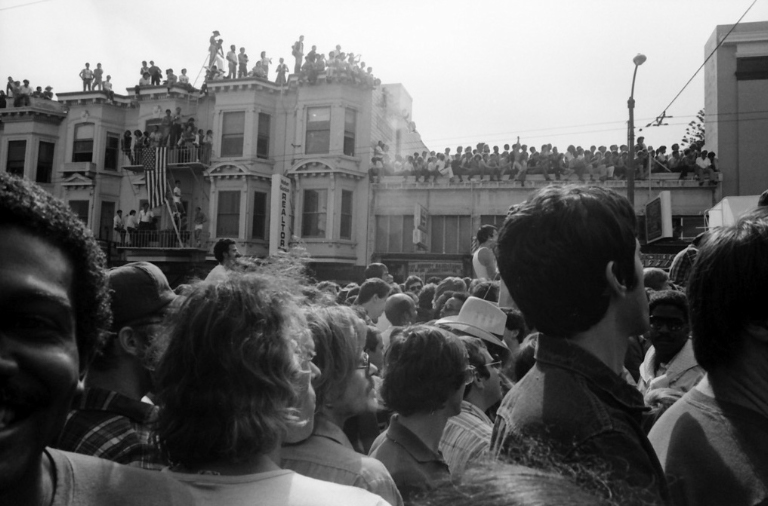 castro street fair - lots of people on the rooftops