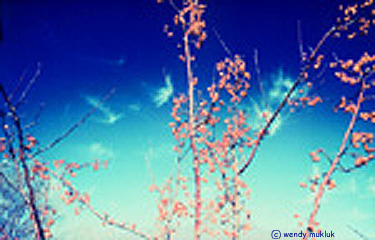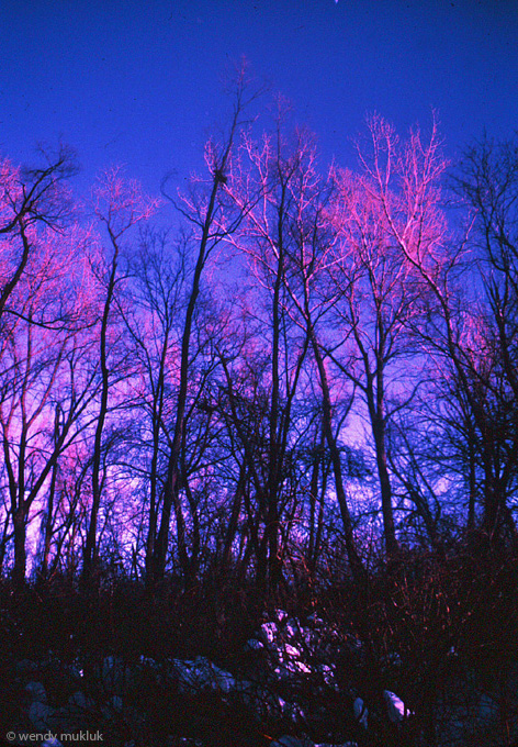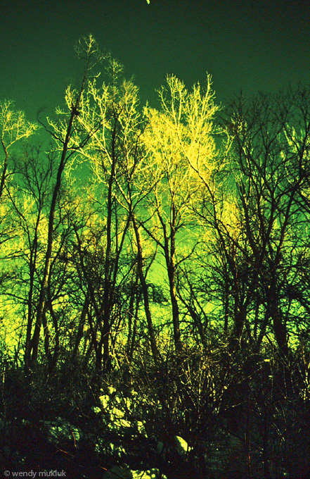 ![]() color infrared slide of bare trees in winter taken with red filter |