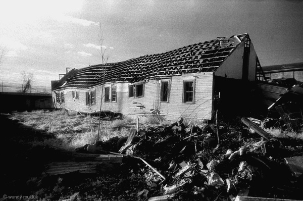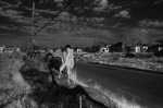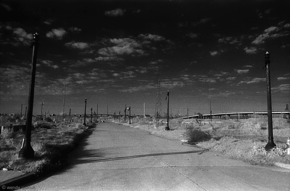 Juan and I walked in a field that was a dump, and near it were streets with lamp posts but no houses, just foundations. Around the periphery were ruins and a few houses that were fixed up or being constructed.