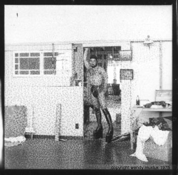 Reticulation is a tricky effect to achieve. The emulsion reacts to extremes in temperature, shrinking and expanding, and can make a splotchy giraffe-pattern. Sometimes, when you try to do this on purpose, nothing happens, and when you don't want it, there it is. The examples here happened by accident, when I was washing film in tepid water, and someone flushed the toilet elsewhere in the house. The film was bathed in hot water and then cold, and the conditions were such that the emulsion crinkled up into the reticulated pattern. The pattern can be very uneven. Note in the top example the pattern changes across the film surface, and doesn't cover the entire frame. A good way to make reticulated images is to first make several copy negatives or take some test pictures that you don't care about ruining, and then try different combinations of hot and cold water on them; taking notes so that you might be able to repeat the best results. I have had good results with Tri-X, and have been told that adding sodium carbonate to the water softens the emulsion and aids in reticulation, but I haven't tried that yet.